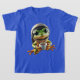 Whimsical green frog in a space helmet cups steaming coffee, blending cosmic charm with cozy cafe vibes. Bold colors and glossy helmet create playful wearable appeal.