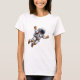 El color es muy bonito al natural, como la foto. El tejido es suave y de buena calidad. Sin defectos en el tintado, ni hilos sueltos o descosidos. Bien la impresión. Los bordes de las letras y el dibujo son nítidos, y el color contrasta muy bien con el de la camiseta.