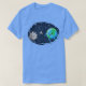 El color es muy bonito al natural, como la foto. El tejido es suave y de buena calidad. Sin defectos en el tintado, ni hilos sueltos o descosidos. Bien la impresión. Los bordes de las letras y el dibujo son nítidos, y el color contrasta muy bien con el de la camiseta.