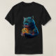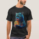 Camiseta Astronauta del gato del espacio azul sujeta el mód