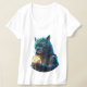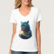 Camiseta Astronauta del gato del espacio azul sujeta el mód