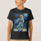 Esta vibrante obra de arte captura a un astronauta totalmente adaptado en medio de un paisaje nevado con árboles de siempre verde, situado contra un cielo estrellado que recuerda a la noche estrellada de Van Gogh. El traje del astronauta se detalla con parches de la bandera estadounidense y cables de comunicación rojos, que reflejan un tema de exploración que combina el viaje espacial con el arte clásico.
