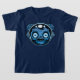 Ilustracion vectorial personalizado de un astronauta zombie con ojos grandes usando un casco espacial con un escudo de vidrio roto en tonos azules. Etiquetas: astronauta, cosmonauta, casco, zombi, espacio, espacial, monstruo, cadete, cadáver