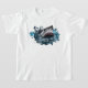 Diseño original de un tiburón saliendo del agua. Creado con lápices, lapiceros y coloreado en Photoshop.