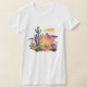 Ilustracion abstracto de la puesta de sol del desierto acuático mexicano con planta de cactus, hierba y vista de montaña