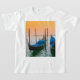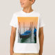 Tranquila ubicación junto al Doge's Palace de Venecia, Italia, con cuatro góndolas, todas juntas que dan a una hermosa puesta de sol niebla.