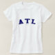¡Compruebe hacia fuera esta camiseta de ATL! ¿Es usted de Atlanta, Georgia? ¿Usted tiene un amigo o un miembro de la familia que amen Atlanta, Georgia? ¡Si es así esta camiseta de la "bandera" es exactamente el regalo que usted está buscando! Las características del diseño "ATL" en letras arqueadas de la marina de guerra en la fuente clásica de la universidad.