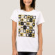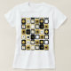 ¿Cuál es blanco y negro y oro por todas partes? Es esta camiseta atractiva retra del oro. Las características del diseño moderno de los mediados de siglo una rejilla de imágenes sofisticadas. Hay mezcla y hace juego modelos de las flores de la MOD, de los starbursts, de los vidrios de martini, y de las estrellas del impresionista en fondos negros, blancos, y del oro. Este diseño es ideal que hace cada día una celebración. ¡Ordene hoy porque todo que brillan realmente debe ser oro!