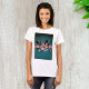 Para el amante de la música un gráfico musical con altavoces. Este diseño se ve realmente efectivo en esta camiseta femenina
