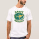 ilustracion de un canguro o de un wallaby que salta vista lateral con las estrellas y las palabras "rugbi Australia" y bola en fondo