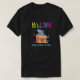 El color es muy bonito al natural, como la foto. El tejido es suave y de buena calidad. Sin defectos en el tintado, ni hilos sueltos o descosidos. Bien la impresión. Los bordes de las letras y el dibujo son nítidos, y el color contrasta muy bien con el de la camiseta.