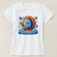 Un alegre cohete personalizado con una cara sonriente se lanza al espacio, rodeado de planetas, estrellas y nubes, creando una escena caprichosa y juguetona.