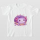 El diseño "Purple Axolotl Eats Donuts" presenta un axolotl malva lindo y caprichoso con branquias vibrantes y plumas. El axolotl se representa picando alegremente sobre un colorido donut, con un mordisco ya sacado. Alrededor hay una variedad de donuts en colores brillantes y divertidos (escarcha rosada, vidrieras de chocolate y rociadas por doquier) esparcidos por todos lados como flotando en un maravilloso y onírico. El fondo es un suave gradiente pastel de lavanda y azul celeste, acentuado con alegres estampados de donut y salpicaduras para realzar el humor divertido y alegre. Este diseño es perfecto para los amantes del arte peculiar, dulce y llamativo.
