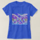 Un moderno y estilizado paisaje invernal con pinos espumosos y copos de nieve. Camiseta con un diseño de personalizable morado, azul, gris plateado y blanco para que puedas personalizar con tu propio texto, imágenes e ideas. Imagen creada con un dibujo de lápiz de color mejorado digitalmente.