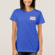 Una divertida camiseta en azul real, con la palabra galesa 'cwtch', que significa 'abrazo' o 'abrazo', en un guión celta, llena de un patrón floral de bonito en un fondo de lino.