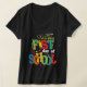 Camiseta con cuello en V de mujer, Negro, XL de adulto