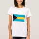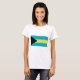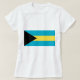 La bandera de las Bahamas muestra un triángulo equilátero negro a la izquierda que representa la unidad y la determinación del pueblo de las Bahamas. El triángulo se orienta hacia tres franjas de igual ancho que simbolizan las zonas de recursos naturales; dos rayas acuamarinas en la parte superior e inferior de la bandera que representa el mar y una franja dorada que representa la tierra. La bandera fue adoptada el 10 de julio de 1973.