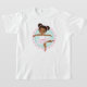 Una bailarina afroamericana en un tutu rosado, interpretando un arabesco. Acento rosa y verde menta.