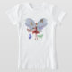 Una bailarina gira en sus dedos del pie en fluir traje rojo y negro. Las mariposas coloridas en tonalidades de verde, de azul, de rosado la rodea, el oro, y el marrón. El fondo de la imagen contiene las alas silenciadas grandes de una mariposa. Personalizar añadiendo su propio monograma, nombre, o subtítulo al producto. Algunas de las mariposas son de la flora de Pat y la fauna en el pedazo de Digitaces diseña.