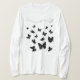 Un diseño elegante que muestra un grupo de mariposas negras de diferentes formas y tamaños volando libremente por la camisa. El diseño presenta líneas suaves y dinámicas que le dan un toque de belleza y libertad. Este diseño es perfecto para los amantes de la naturaleza y la sencillez, y quieren mostrar su amor por la belleza natural en un estilo moderno.
