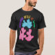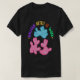 El color es muy bonito al natural, como la foto. El tejido es suave y de buena calidad. Sin defectos en el tintado, ni hilos sueltos o descosidos. Bien la impresión. Los bordes de las letras y el dibujo son nítidos, y el color contrasta muy bien con el de la camiseta.