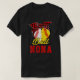 El color es muy bonito al natural, como la foto. El tejido es suave y de buena calidad. Sin defectos en el tintado, ni hilos sueltos o descosidos. Bien la impresión. Los bordes de las letras y el dibujo son nítidos, y el color contrasta muy bien con el de la camiseta.