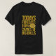 El color es muy bonito al natural, como la foto. El tejido es suave y de buena calidad. Sin defectos en el tintado, ni hilos sueltos o descosidos. Bien la impresión. Los bordes de las letras y el dibujo son nítidos, y el color contrasta muy bien con el de la camiseta.