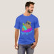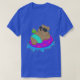 El color es muy bonito al natural, como la foto. El tejido es suave y de buena calidad. Sin defectos en el tintado, ni hilos sueltos o descosidos. Bien la impresión. Los bordes de las letras y el dibujo son nítidos, y el color contrasta muy bien con el de la camiseta.