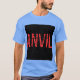 El color es muy bonito al natural, como la foto. El tejido es suave y de buena calidad. Sin defectos en el tintado, ni hilos sueltos o descosidos. Bien la impresión. Los bordes de las letras y el dibujo son nítidos, y el color contrasta muy bien con el de la camiseta.