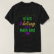 El color es muy bonito al natural, como la foto. El tejido es suave y de buena calidad. Sin defectos en el tintado, ni hilos sueltos o descosidos. Bien la impresión. Los bordes de las letras y el dibujo son nítidos, y el color contrasta muy bien con el de la camiseta.