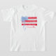 Celebra con estilo patriótico y un toque personalizado en esta camiseta para niñas inspirada en el grandmillennial, que presenta rayas rojas clásicas y un hermoso lazo azul en acuarela en lugar de estrellas tradicionales. Debajo de la bandera, un nombre personalizado en elegante letra cursiva roja añade un detalle especial y significativo.