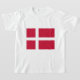 La bandera danesa es una bandera sólida con una cruz blanca. Los colores usados en la bandera son rojo, blanco. La proporción de la bandera danesa es de 28:37. La bandera de Dinamarca se adoptó en 1370. El primer uso del diseño actual de la bandera fue en 1370. El último cambio en el diseño actual de la bandera danesa fue en 1893.