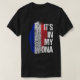 El color es muy bonito al natural, como la foto. El tejido es suave y de buena calidad. Sin defectos en el tintado, ni hilos sueltos o descosidos. Bien la impresión. Los bordes de las letras y el dibujo son nítidos, y el color contrasta muy bien con el de la camiseta.