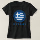 Camiseta negra de mujer Hellas con la bandera nacional de Grecia dentro de un círculo azul azteca griego. Esta camiseta es ideal si eres griego o para usar mientras disfrutas de tus vacaciones en Grecia. También puedes regalar esto como un regalo de Grecia a cualquiera que le guste esta camiseta.