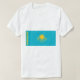 Este diseño presenta la bandera nacional de Kazajistán (oficialmente conocida como República de Kazajistán), que es un país transcontinental principalmente ubicado en Asia Central con una porción menor al oeste del Ural en Europa del Este. Kazajistán comparte fronteras con Rusia en el norte, China en el este, y Kirguistán, Uzbekistán y Turkmenistán en el sur; también linda con una gran parte del Mar Caspio en el suroeste. Kazajstán también está muy cerca de Mongolia, aunque los dos países no comparten frontera. Es el país sin litoral más grande del mundo. La capital de Kazajistán es Nur-Sultan, antes conocida como Astaná. La ciudad más grande de Kazajistán es Almaty. Otras ciudades importantes de Kazajstán son Shymkent, Karaganda, Aktobe, Taraz, Pavlodar, Oskemen, Semey y Atyrau.