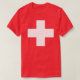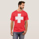 Estas camisetas del gráfico y otros artículos ofrecen un adorno de la cruz blanca de la bandera suiza en un fondo rojo.