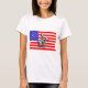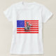Un nativo americano en caballo con la bandera americana como descenso trasero