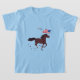 Running bay brown pony celebra el nacimiento de los Estados Unidos de América con una bandera en los dientes y estrellas ondeando desde sus cascos. Ilustración.