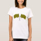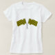 Banderas dobles amarillas y negras de carreras. Este diseño se ve realmente efectivo en esta camiseta femenina