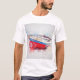 Este llamativo diseño de camisetas de barcos de pesca presenta una vibrante paleta de colores de blanco, rojo y azul, lo que crea un impresionante despliegue artístico de creatividad. Tiene un toque vintage. Los intrincados trazos de pincel y los detalles del trabajo de pintura muestran la habilidad y pasión del artista, convirtiéndolo en una adición única y elegante a cualquier armario.
