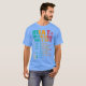El color es muy bonito al natural, como la foto. El tejido es suave y de buena calidad. Sin defectos en el tintado, ni hilos sueltos o descosidos. Bien la impresión. Los bordes de las letras y el dibujo son nítidos, y el color contrasta muy bien con el de la camiseta.