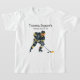 Un ilustracion enérgico y colorido de un jugador de hockey a mitad de acción, capturando perfectamente la emoción de una celebración de cumpleaños en la pista. Decorado con un atrevido uniforme negro y amarillo con un toque rojo en las patinetas, el jugador se centra intensamente en el disco, listo para hacer el siguiente gran movimiento. Un dinámico tributo a los deportes, el trabajo en equipo y la celebración.
