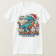 "Dino festivo", con un alegre T-Rex en un sombrero de Papá Noel enredado con brillantes luces de Navidad con el título "¡Que tengan Navidades ruidosos!"