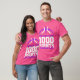 El color es muy bonito al natural, como la foto. El tejido es suave y de buena calidad. Sin defectos en el tintado, ni hilos sueltos o descosidos. Bien la impresión. Los bordes de las letras y el dibujo son nítidos, y el color contrasta muy bien con el de la camiseta.