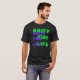 El color es muy bonito al natural, como la foto. El tejido es suave y de buena calidad. Sin defectos en el tintado, ni hilos sueltos o descosidos. Bien la impresión. Los bordes de las letras y el dibujo son nítidos, y el color contrasta muy bien con el de la camiseta.