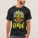 Esta camiseta negra exhibe un diseño vibrante con una abeja naranja y negra encaramada en una elegante margarita con pétalos blancos y amarillos. Debajo de la abeja y la flor, la palabra "amable" está escrita en un guión amarillo que fluye. El diseño general promueve un mensaje de gentileza y positividad, combinado con imágenes inspiradas en la naturaleza.