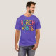 El color es muy bonito al natural, como la foto. El tejido es suave y de buena calidad. Sin defectos en el tintado, ni hilos sueltos o descosidos. Bien la impresión. Los bordes de las letras y el dibujo son nítidos, y el color contrasta muy bien con el de la camiseta.