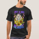 El color es muy bonito al natural, como la foto. El tejido es suave y de buena calidad. Sin defectos en el tintado, ni hilos sueltos o descosidos. Bien la impresión. Los bordes de las letras y el dibujo son nítidos, y el color contrasta muy bien con el de la camiseta.