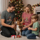 "This absolutely adorable illustration features a charming portrait of a Beagle dog with its characteristic tri-color coat and endearing, soulful eyes. The dog is given a festive twist with reindeer antlers adorned with small red and blue/green ornaments. Two beautifully wrapped Christmas presents with red ribbons sit prominently on either side. This high-quality graphic is ideal for personalized holiday gifts for Beagle owners, Christmas cards, apparel, stickers, or any product celebrating this friendly and popular dog breed."