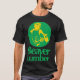 El color es muy bonito al natural, como la foto. El tejido es suave y de buena calidad. Sin defectos en el tintado, ni hilos sueltos o descosidos. Bien la impresión. Los bordes de las letras y el dibujo son nítidos, y el color contrasta muy bien con el de la camiseta.